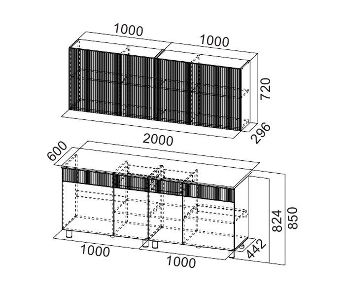 Ширина кухни: 2000 мм