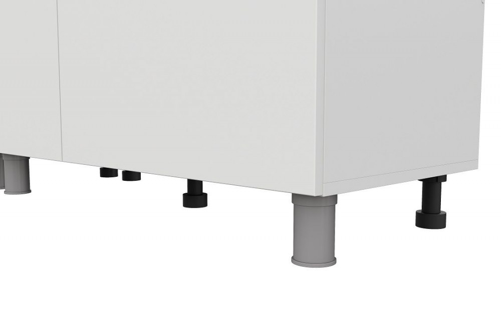 Кухня не имеет цоколя, впереди устанавливаются декоративные опоры.
